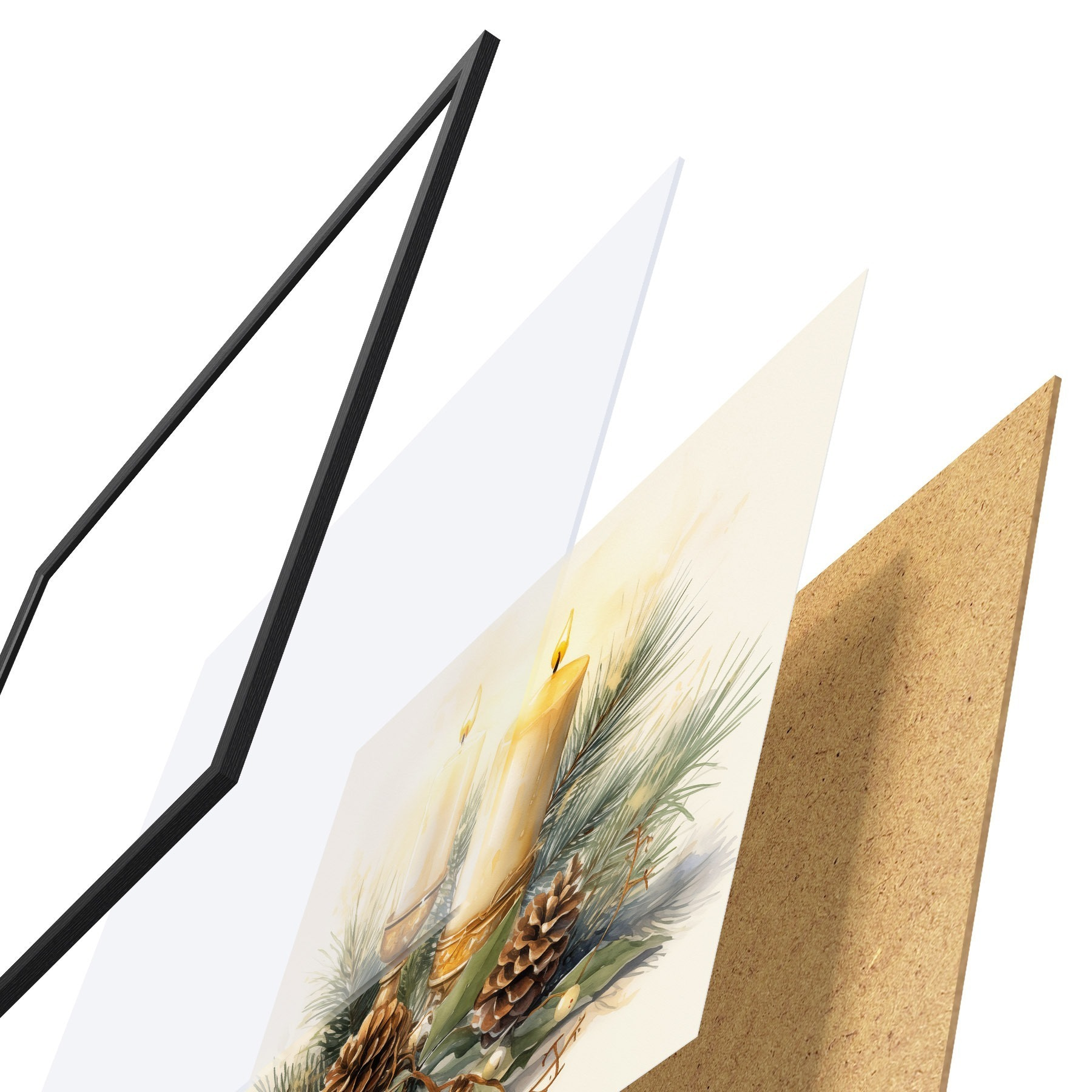 Plakát se skládá z rámu, plexiskla, tištěného obrazu a dřevotřískového podkladu. Díky úchytům na zadní straně lze plakát ihned zavěsit na zeď.