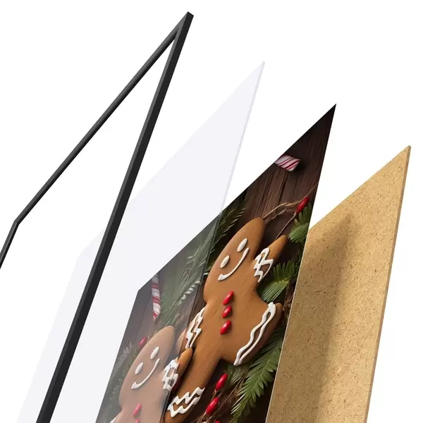Plakát se skládá z rámu, plexiskla, tištěného obrazu a dřevotřískového podkladu. Díky úchytům na zadní straně lze plakát ihned zavěsit na zeď.