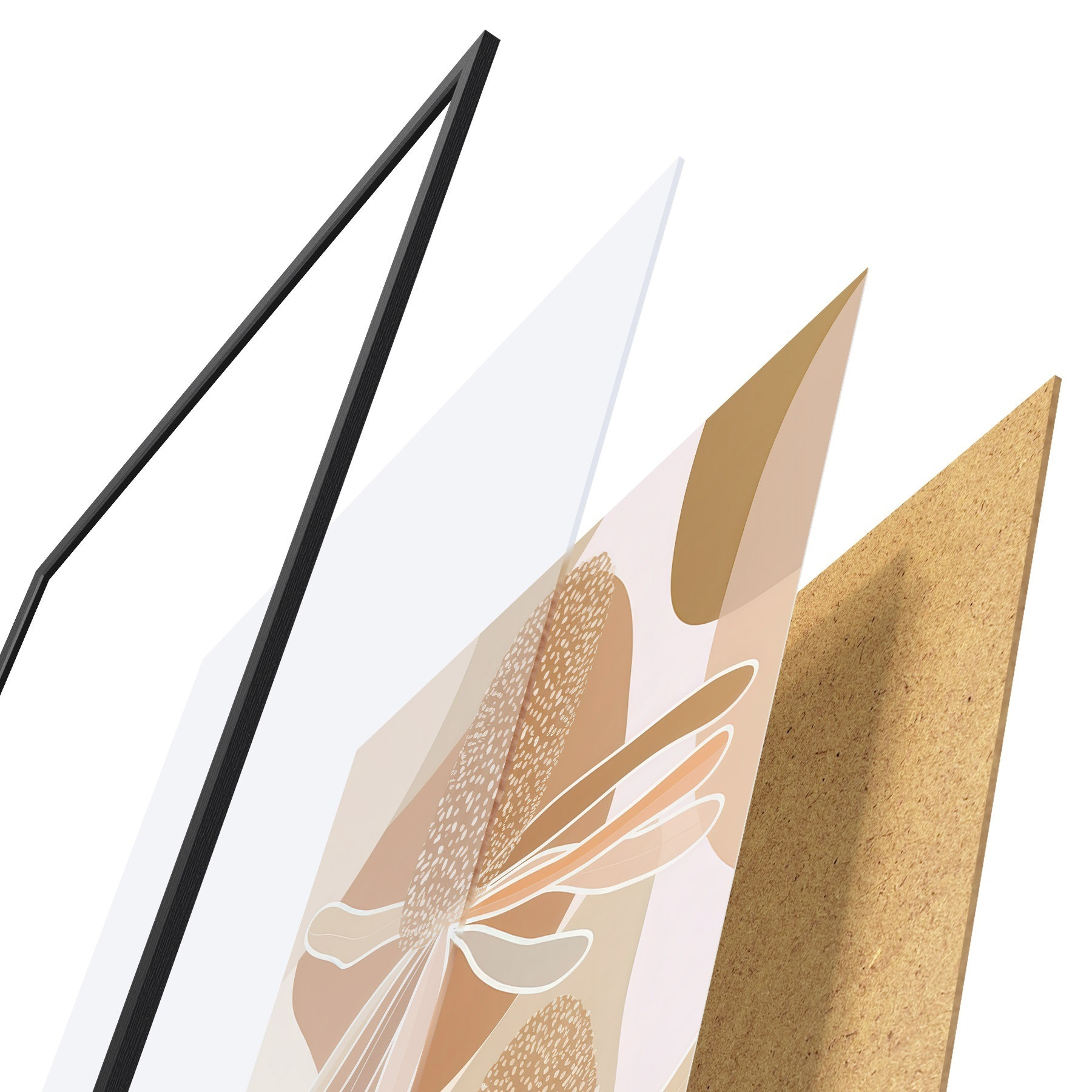 Plakát se skládá z rámu, plexiskla, tištěného obrazu a dřevotřískového podkladu. Díky úchytům na zadní straně lze plakát ihned zavěsit na zeď.