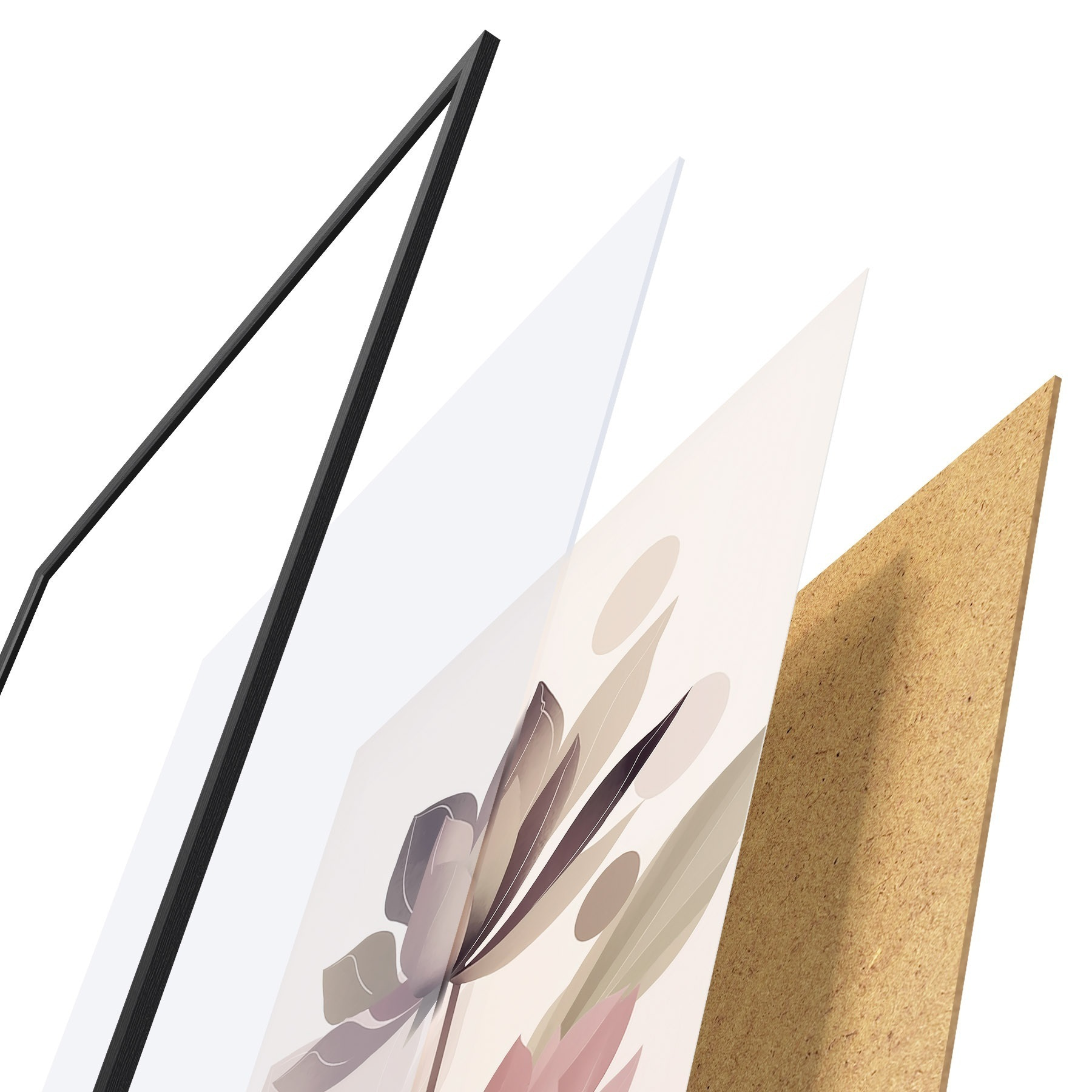 Plakát se skládá z rámu, plexiskla, tištěného obrazu a dřevotřískového podkladu. Díky úchytům na zadní straně lze plakát ihned zavěsit na zeď.