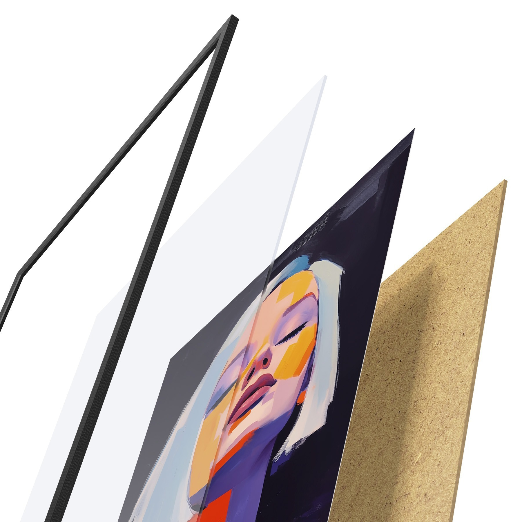 Plakát se skládá z rámu, plexiskla, tištěného obrazu a dřevotřískového podkladu. Díky úchytům na zadní straně lze plakát ihned zavěsit na zeď.