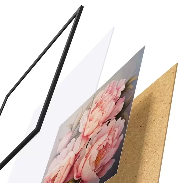 Plakát se skládá z rámu, plexiskla, tištěného obrazu a dřevotřískového podkladu. Díky úchytům na zadní straně lze plakát ihned zavěsit na zeď.