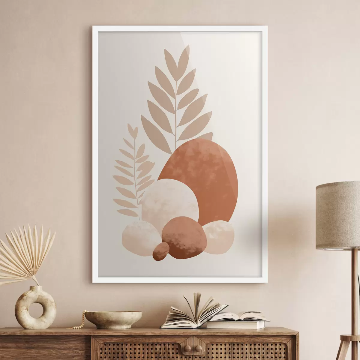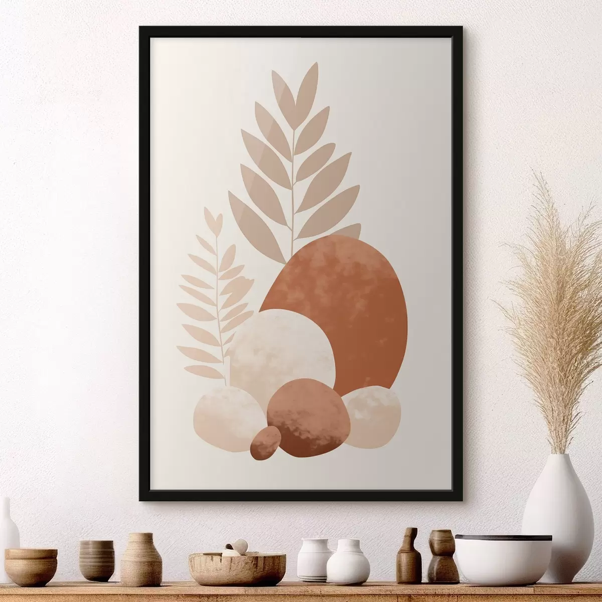 Úvodní stránkaKatalog posterůJedinečné plakátyPoster Abstraktní tvary, texturované kameny a listy v tlumených broskvových a terakotových tónech, minimalistické, krémové pozadí Č. f47013