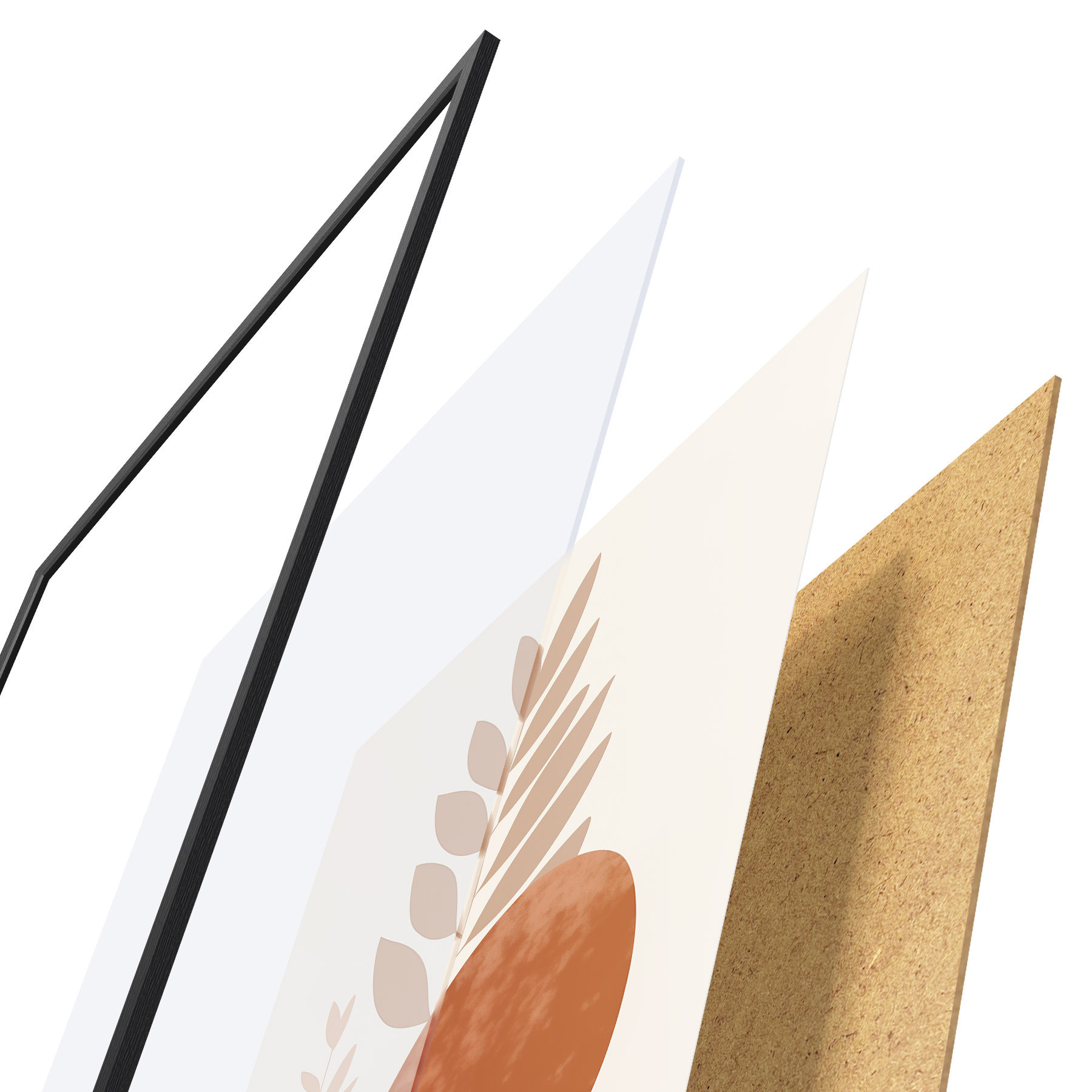 Plakát se skládá z rámu, plexiskla, tištěného obrazu a dřevotřískového podkladu. Díky úchytům na zadní straně lze plakát ihned zavěsit na zeď.