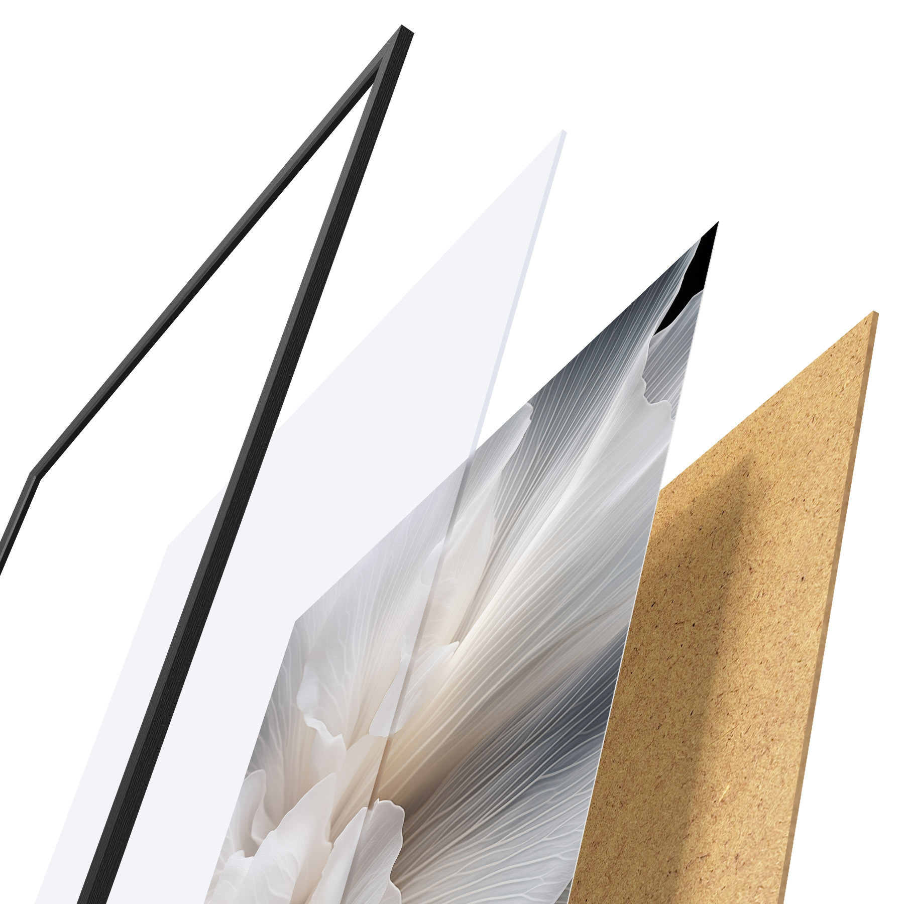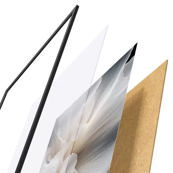 Plakát se skládá z rámu, plexiskla, tištěného obrazu a dřevotřískového podkladu. Díky úchytům na zadní straně lze plakát ihned zavěsit na zeď.