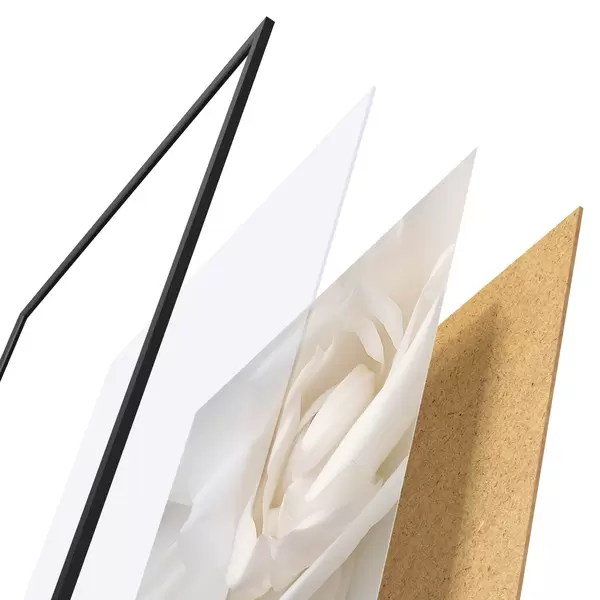 Plakát se skládá z rámu, plexiskla, tištěného obrazu a dřevotřískového podkladu. Díky úchytům na zadní straně lze plakát ihned zavěsit na zeď.