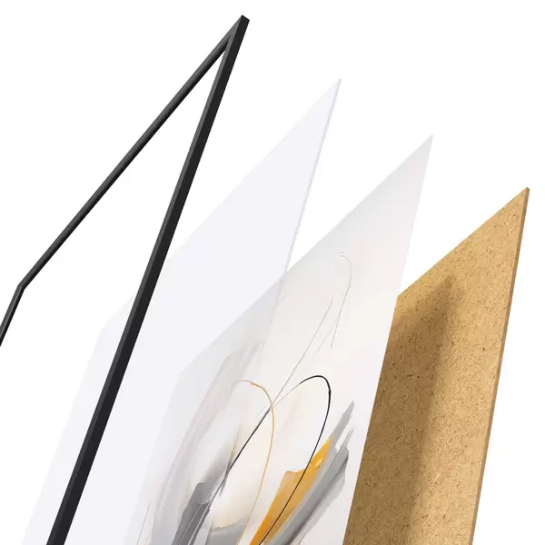 Plakát se skládá z rámu, plexiskla, tištěného obrazu a dřevotřískového podkladu. Díky úchytům na zadní straně lze plakát ihned zavěsit na zeď.