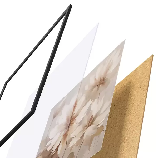 Plakát se skládá z rámu, plexiskla, tištěného obrazu a dřevotřískového podkladu. Díky úchytům na zadní straně lze plakát ihned zavěsit na zeď.