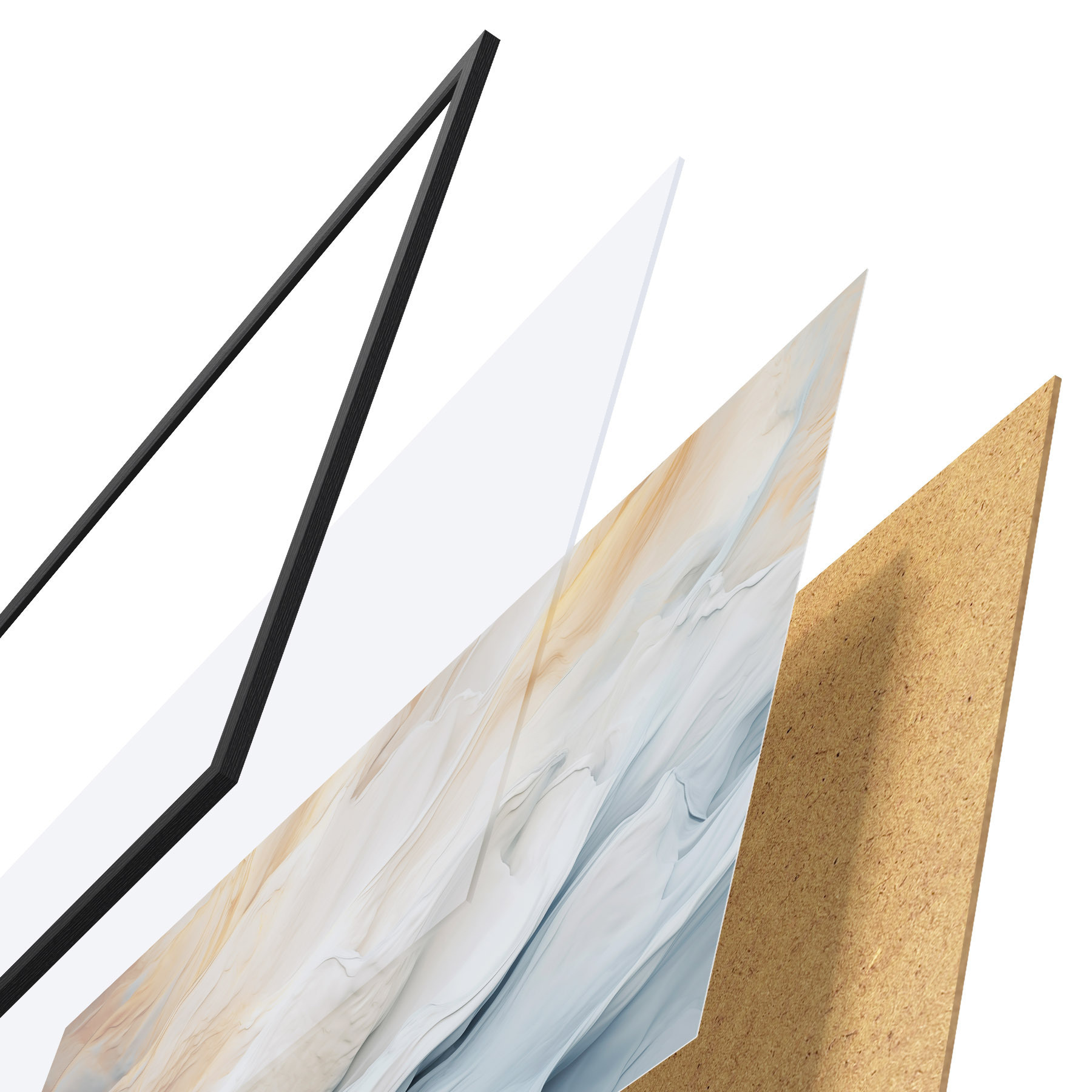 Plakát se skládá z rámu, plexiskla, tištěného obrazu a dřevotřískového podkladu. Díky úchytům na zadní straně lze plakát ihned zavěsit na zeď.