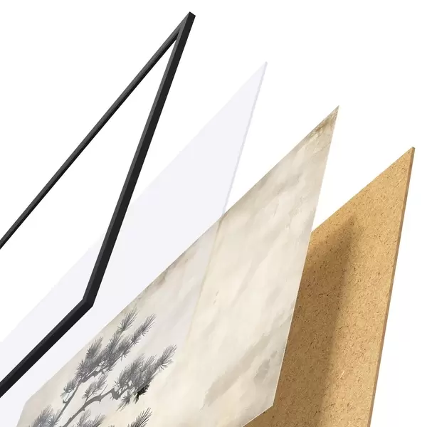 Plakát se skládá z rámu, plexiskla, tištěného obrazu a dřevotřískového podkladu. Díky úchytům na zadní straně lze plakát ihned zavěsit na zeď.