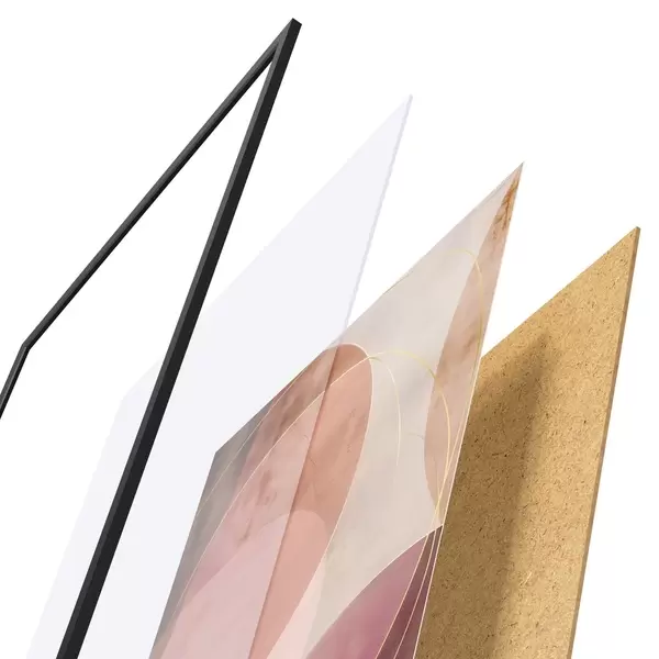 Plakát se skládá z rámu, plexiskla, tištěného obrazu a dřevotřískového podkladu. Díky úchytům na zadní straně lze plakát ihned zavěsit na zeď.