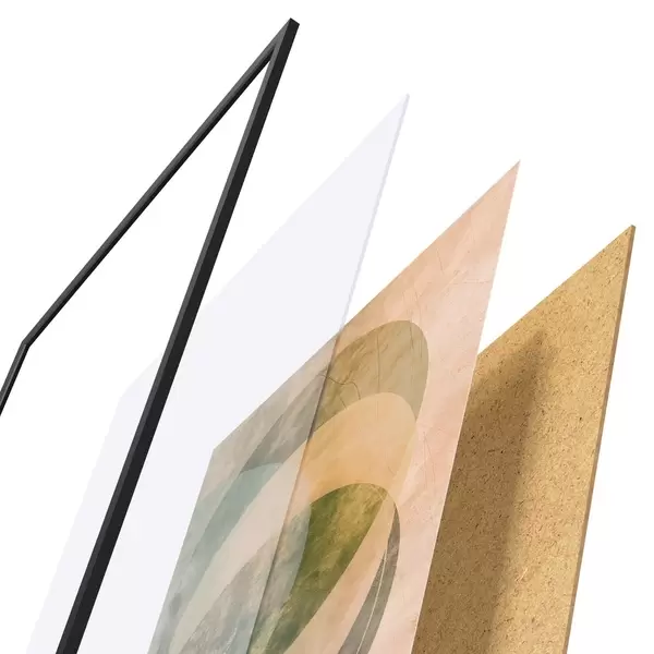 Plakát se skládá z rámu, plexiskla, tištěného obrazu a dřevotřískového podkladu. Díky úchytům na zadní straně lze plakát ihned zavěsit na zeď.