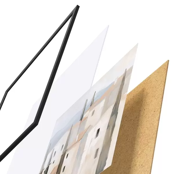 Plakát se skládá z rámu, plexiskla, tištěného obrazu a dřevotřískového podkladu. Díky úchytům na zadní straně lze plakát ihned zavěsit na zeď.