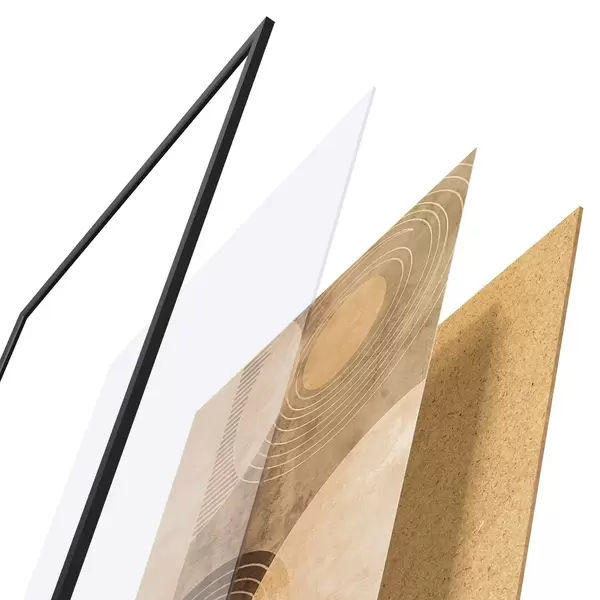 Plakát se skládá z rámu, plexiskla, tištěného obrazu a dřevotřískového podkladu. Díky úchytům na zadní straně lze plakát ihned zavěsit na zeď.