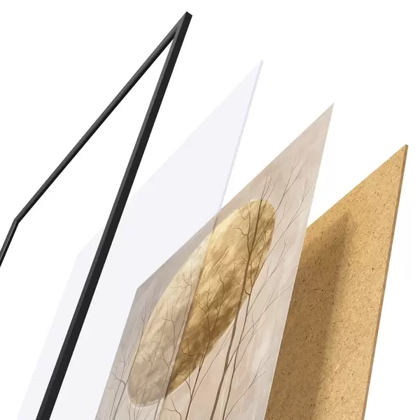 Plakát se skládá z rámu, plexiskla, tištěného obrazu a dřevotřískového podkladu. Díky úchytům na zadní straně lze plakát ihned zavěsit na zeď.