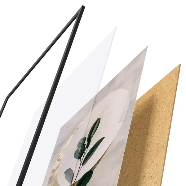 Plakát se skládá z rámu, plexiskla, tištěného obrazu a dřevotřískového podkladu. Díky úchytům na zadní straně lze plakát ihned zavěsit na zeď.