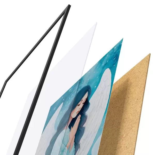 Plakát se skládá z rámu, plexiskla, tištěného obrazu a dřevotřískového podkladu. Díky úchytům na zadní straně lze plakát ihned zavěsit na zeď.