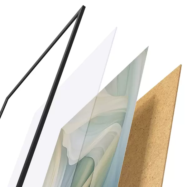 Plakát se skládá z rámu, plexiskla, tištěného obrazu a dřevotřískového podkladu. Díky úchytům na zadní straně lze plakát ihned zavěsit na zeď.