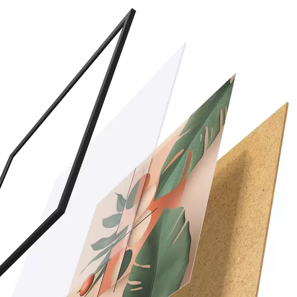 Plakát se skládá z rámu, plexiskla, tištěného obrazu a dřevotřískového podkladu. Díky úchytům na zadní straně lze plakát ihned zavěsit na zeď.