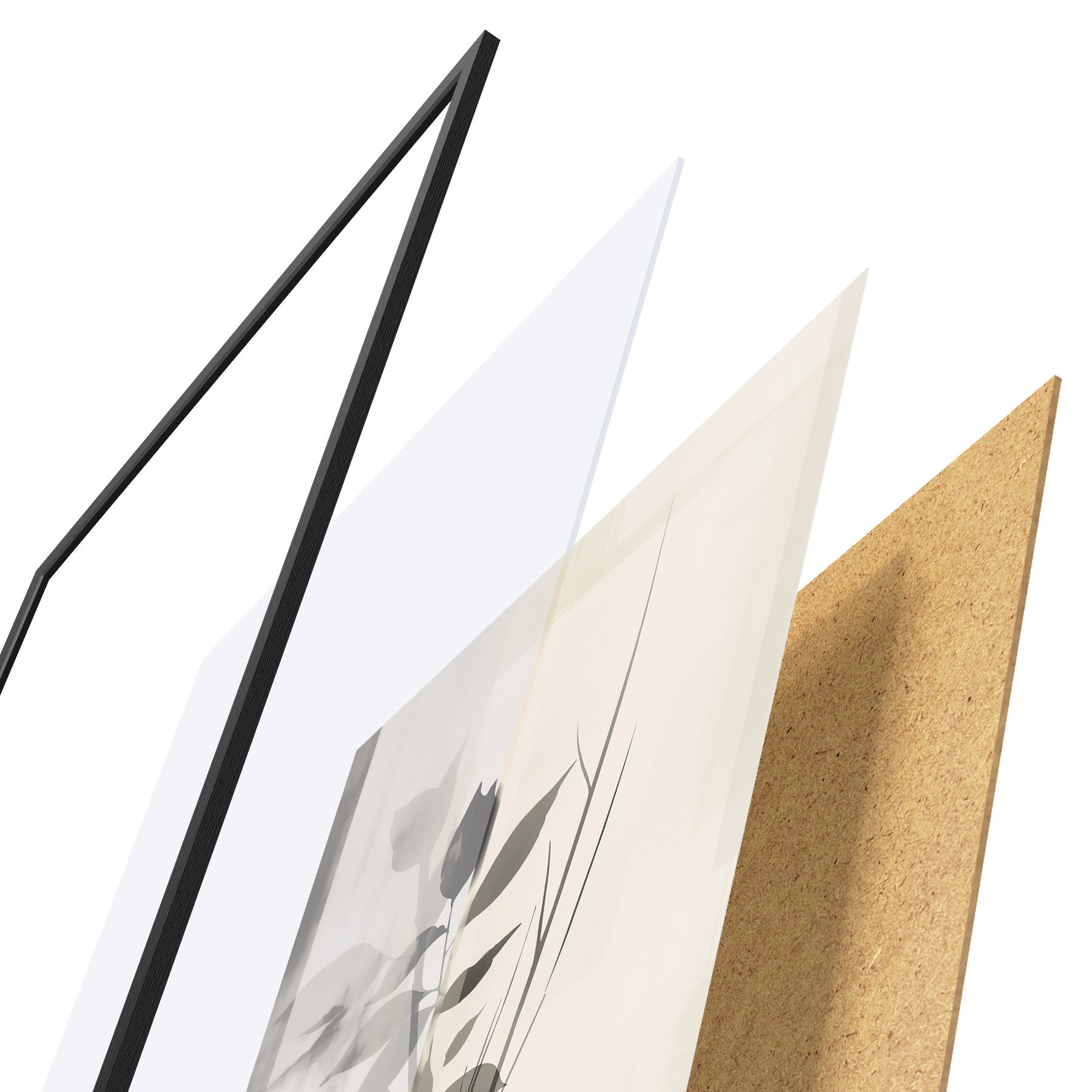 Plakát se skládá z rámu, plexiskla, tištěného obrazu a dřevotřískového podkladu. Díky úchytům na zadní straně lze plakát ihned zavěsit na zeď.