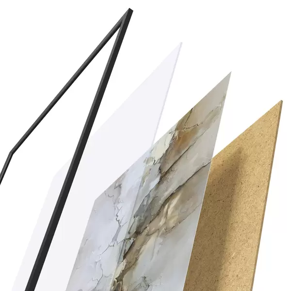 Plakát se skládá z rámu, plexiskla, tištěného obrazu a dřevotřískového podkladu. Díky úchytům na zadní straně lze plakát ihned zavěsit na zeď.