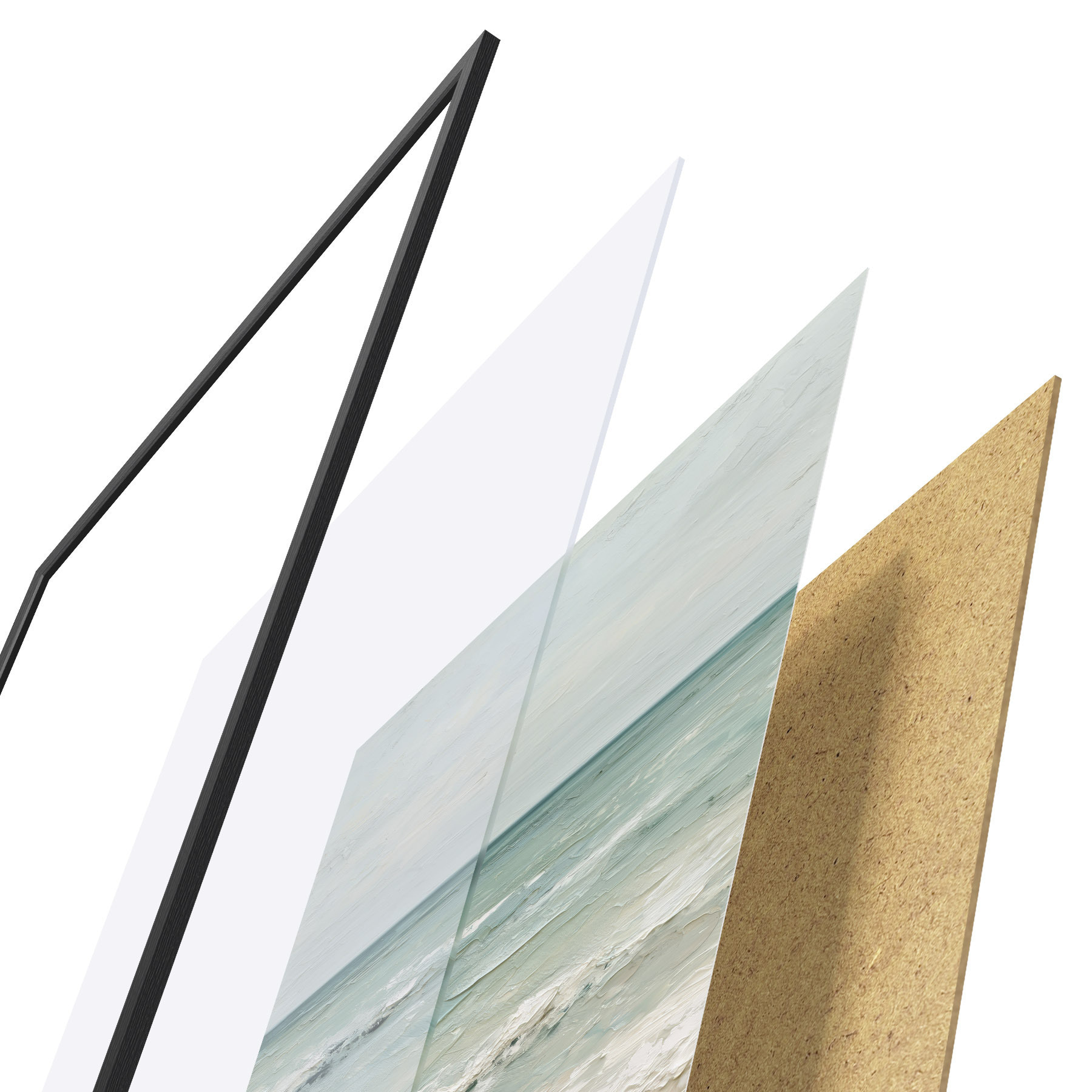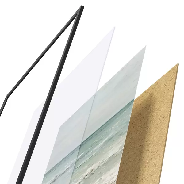 Plakát se skládá z rámu, plexiskla, tištěného obrazu a dřevotřískového podkladu. Díky úchytům na zadní straně lze plakát ihned zavěsit na zeď.