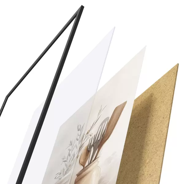 Plakát se skládá z rámu, plexiskla, tištěného obrazu a dřevotřískového podkladu. Díky úchytům na zadní straně lze plakát ihned zavěsit na zeď.