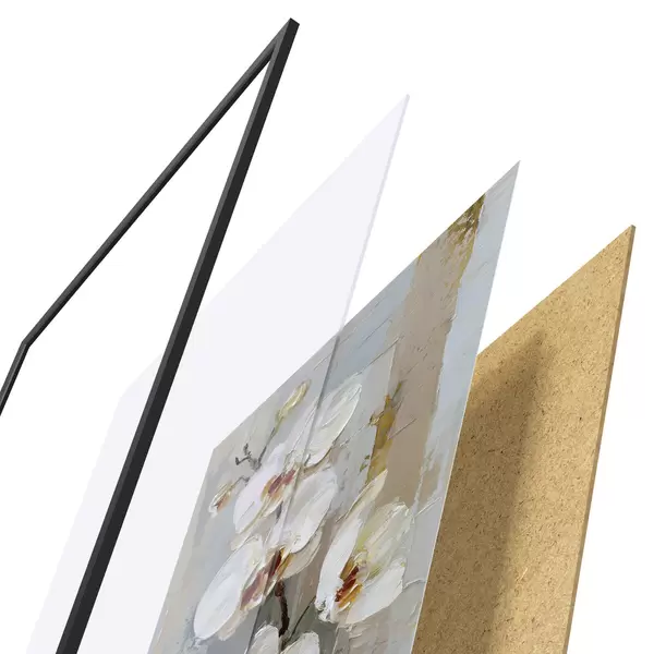 Plakát se skládá z rámu, plexiskla, tištěného obrazu a dřevotřískového podkladu. Díky úchytům na zadní straně lze plakát ihned zavěsit na zeď.