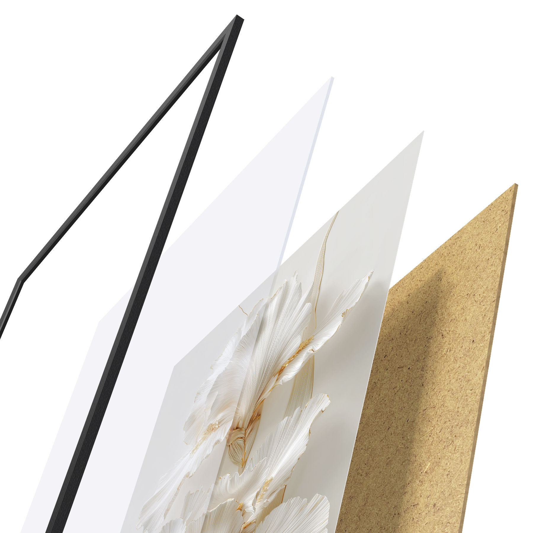 Plakát se skládá z rámu, plexiskla, tištěného obrazu a dřevotřískového podkladu. Díky úchytům na zadní straně lze plakát ihned zavěsit na zeď.
