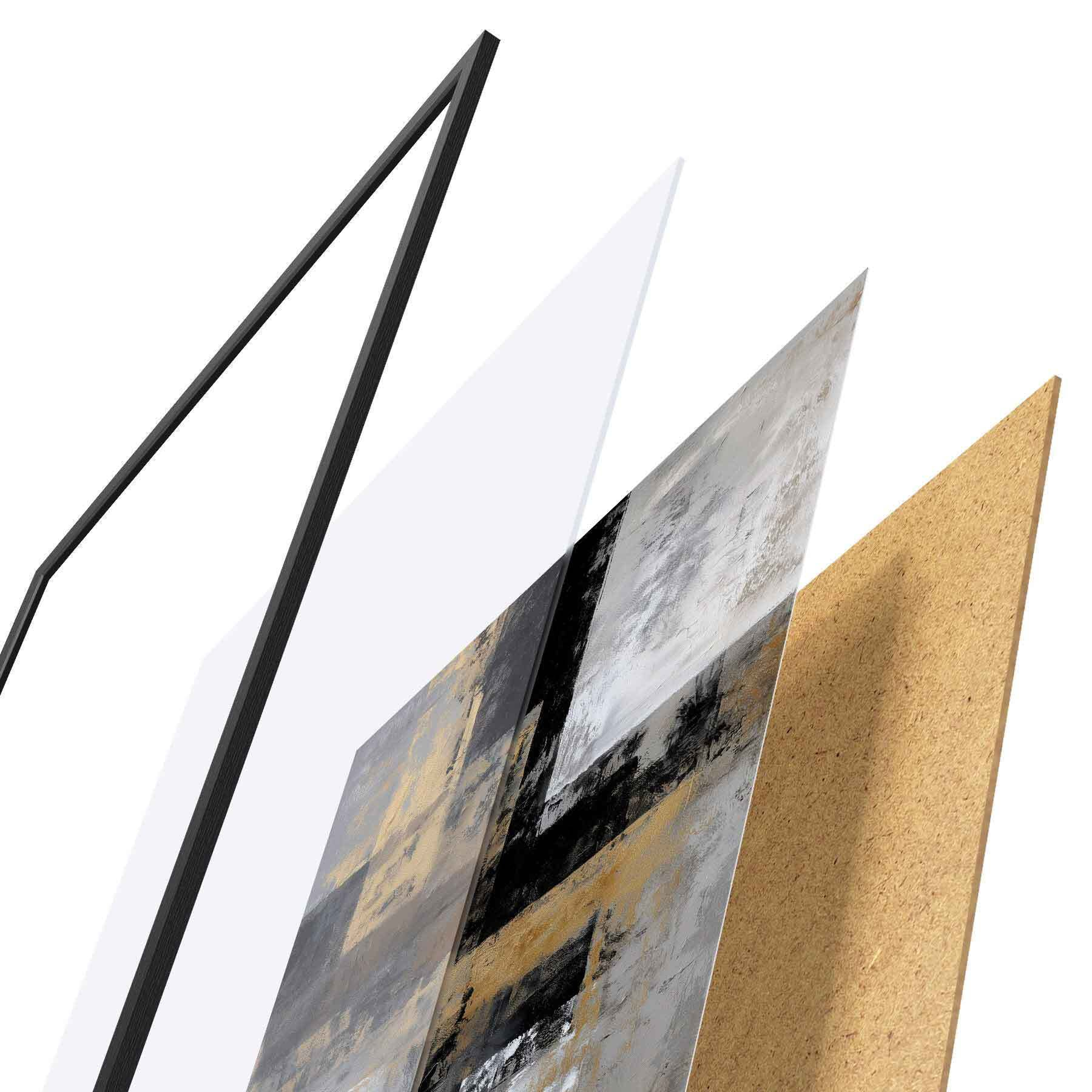 Plakát se skládá z rámu, plexiskla, tištěného obrazu a dřevotřískového podkladu. Díky úchytům na zadní straně lze plakát ihned zavěsit na zeď.