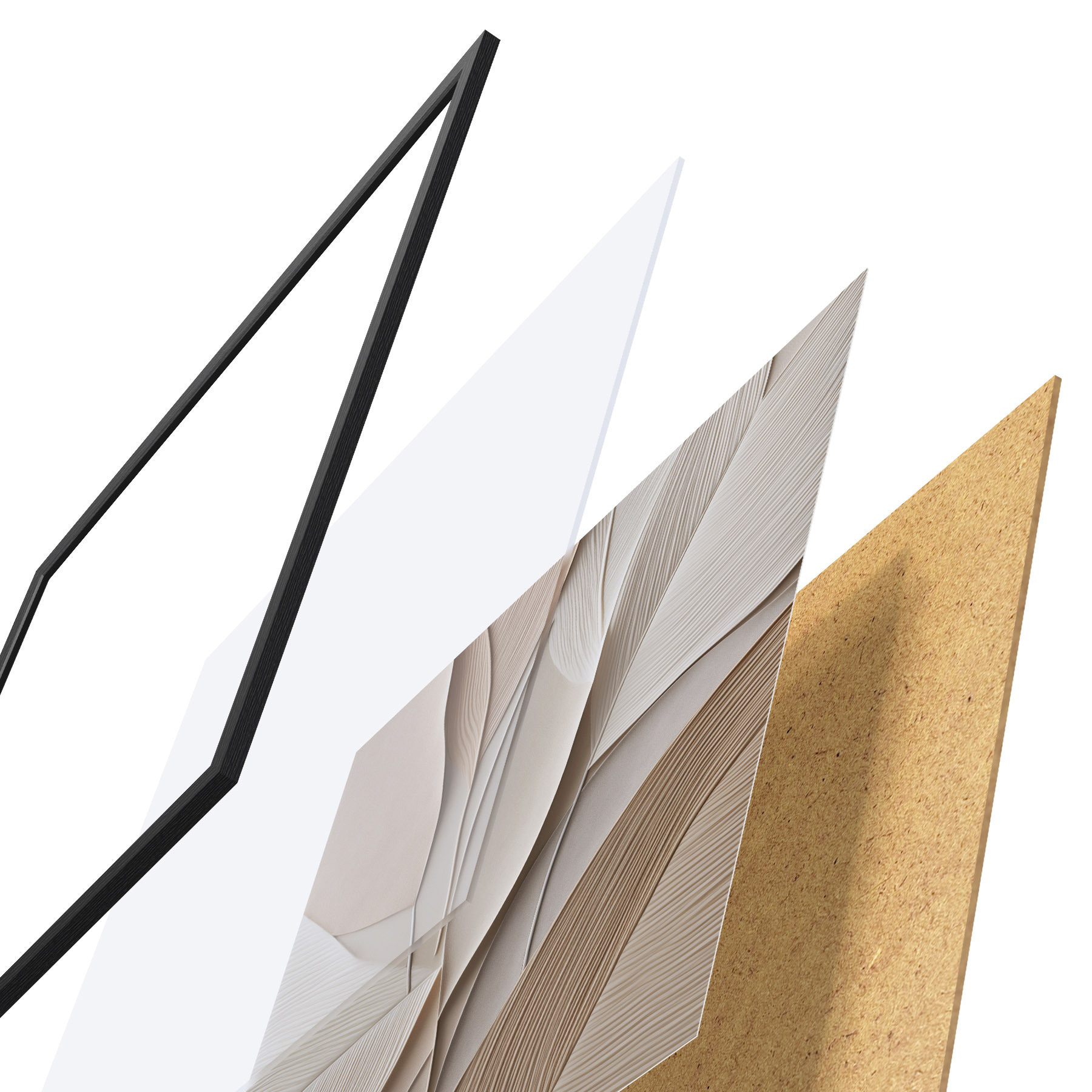 Plakát se skládá z rámu, plexiskla, tištěného obrazu a dřevotřískového podkladu. Díky úchytům na zadní straně lze plakát ihned zavěsit na zeď.