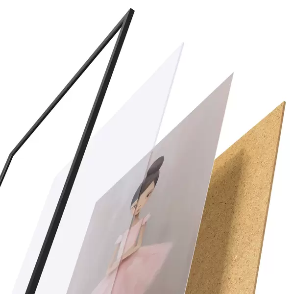 Plakát se skládá z rámu, plexiskla, tištěného obrazu a dřevotřískového podkladu. Díky úchytům na zadní straně lze plakát ihned zavěsit na zeď.