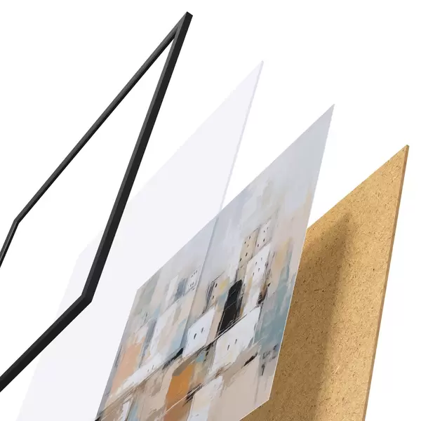 Plakát se skládá z rámu, plexiskla, tištěného obrazu a dřevotřískového podkladu. Díky úchytům na zadní straně lze plakát ihned zavěsit na zeď.