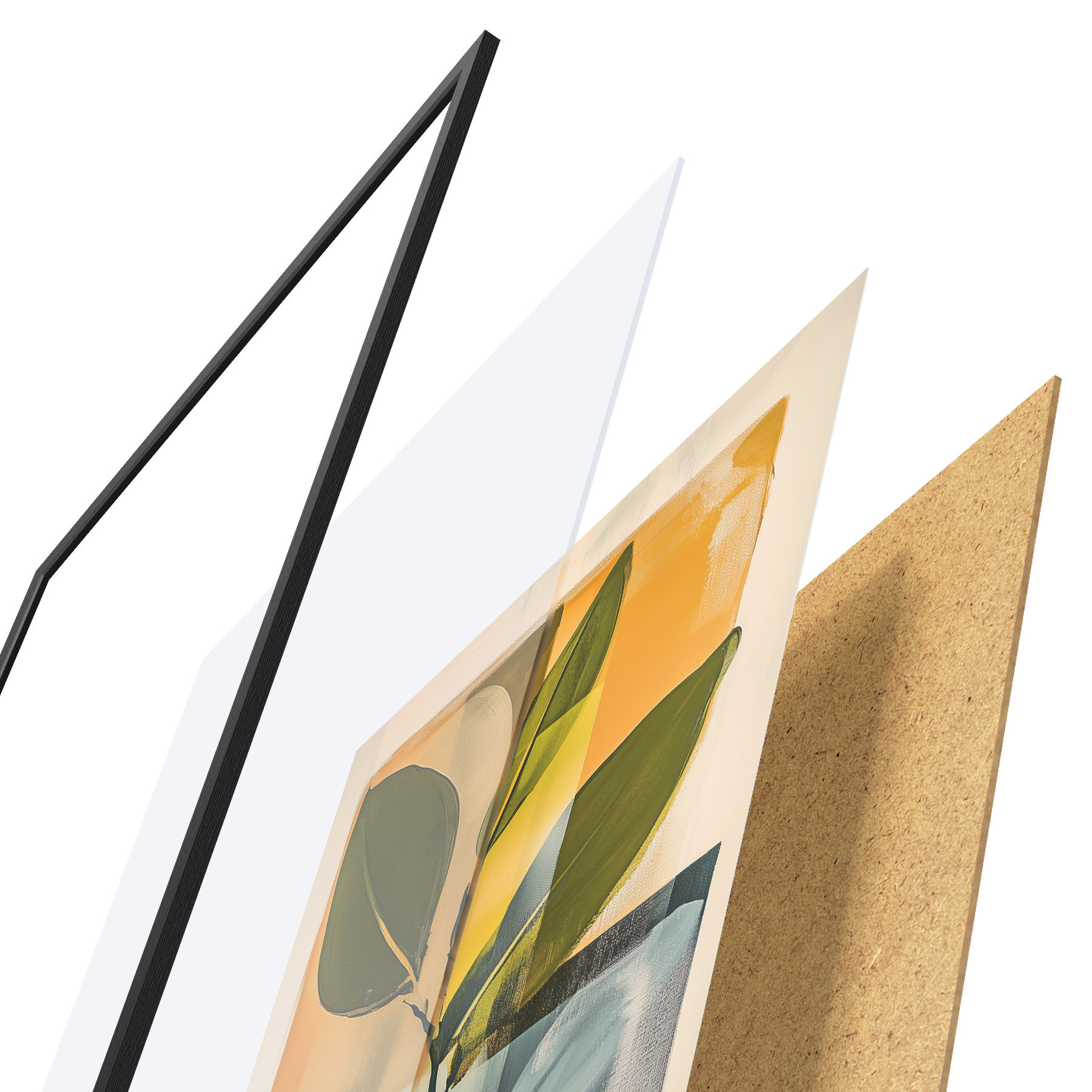 Plakát se skládá z rámu, plexiskla, tištěného obrazu a dřevotřískového podkladu. Díky úchytům na zadní straně lze plakát ihned zavěsit na zeď.