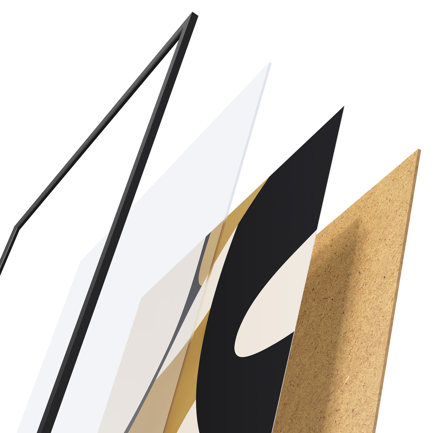 Plakát se skládá z rámu, plexiskla, tištěného obrazu a dřevotřískového podkladu. Díky úchytům na zadní straně lze plakát ihned zavěsit na zeď.