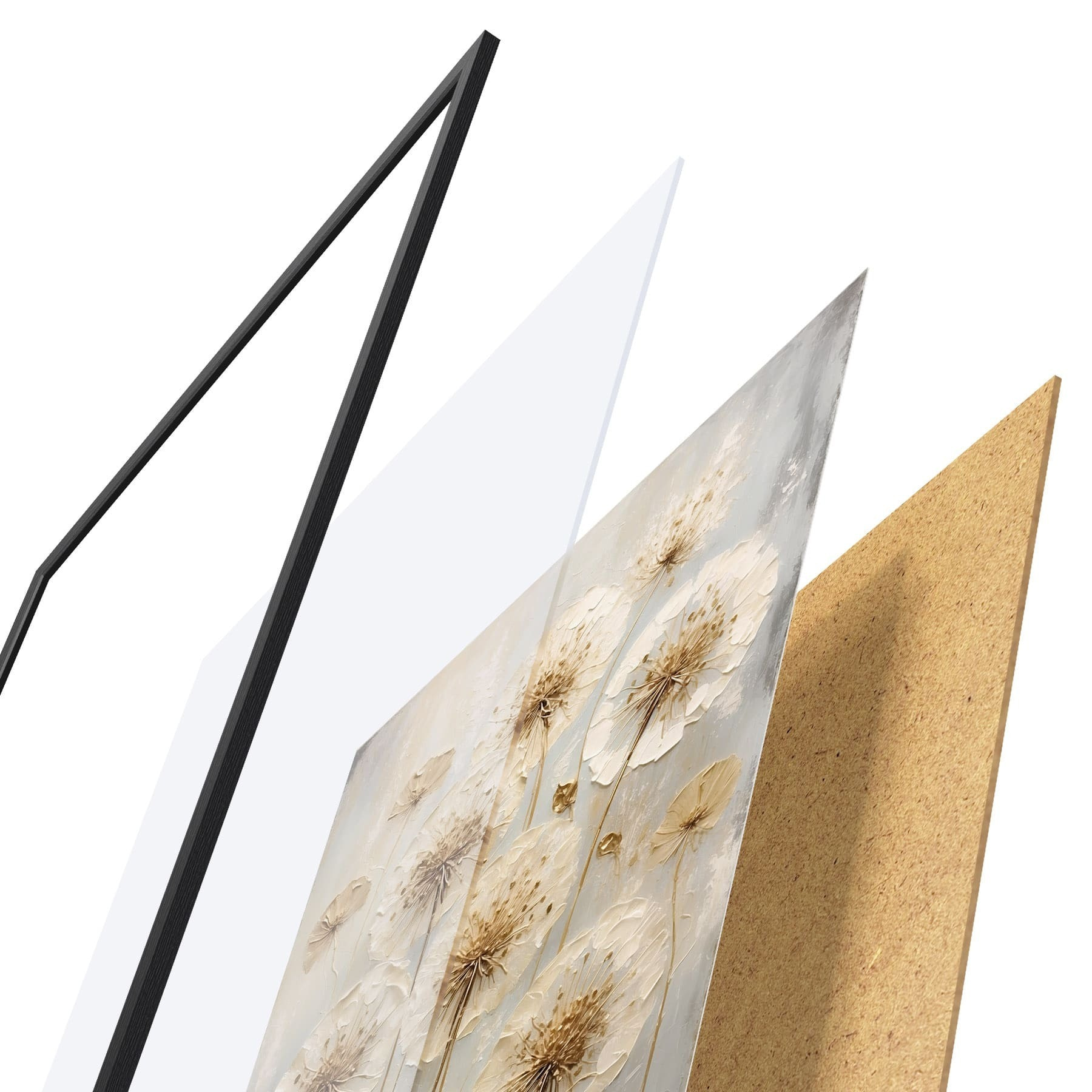 Plakát se skládá z rámu, plexiskla, tištěného obrazu a dřevotřískového podkladu. Díky úchytům na zadní straně lze plakát ihned zavěsit na zeď.