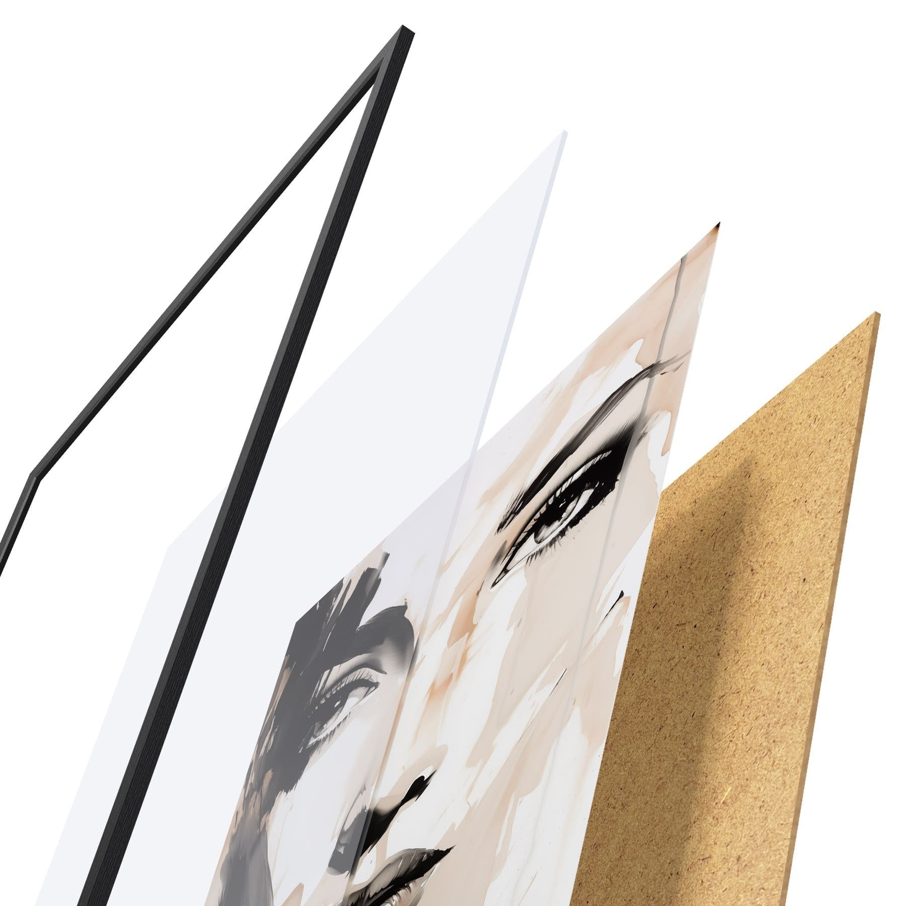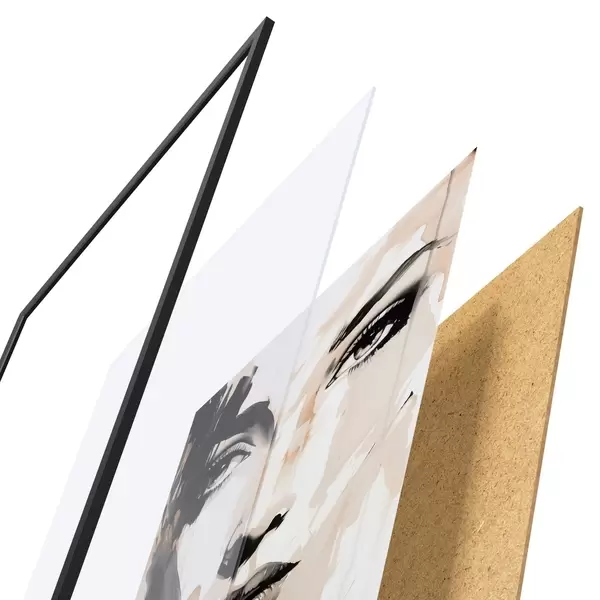 Plakát se skládá z rámu, plexiskla, tištěného obrazu a dřevotřískového podkladu. Díky úchytům na zadní straně lze plakát ihned zavěsit na zeď.