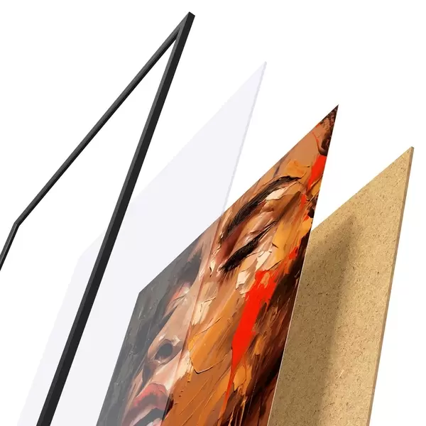 Plakát se skládá z rámu, plexiskla, tištěného obrazu a dřevotřískového podkladu. Díky úchytům na zadní straně lze plakát ihned zavěsit na zeď.
