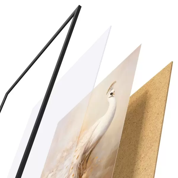 Plakát se skládá z rámu, plexiskla, tištěného obrazu a dřevotřískového podkladu. Díky úchytům na zadní straně lze plakát ihned zavěsit na zeď.