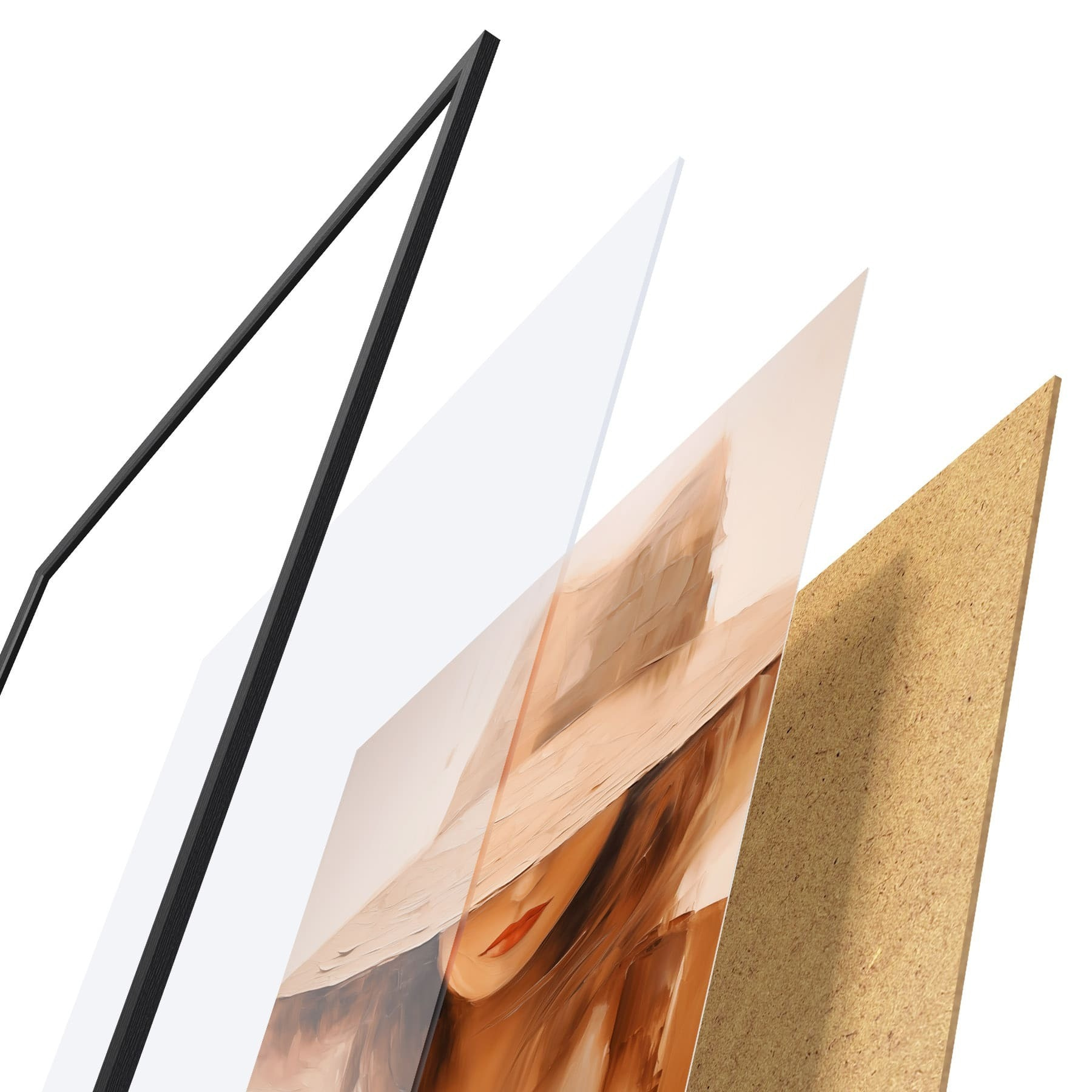 Plakát se skládá z rámu, plexiskla, tištěného obrazu a dřevotřískového podkladu. Díky úchytům na zadní straně lze plakát ihned zavěsit na zeď.