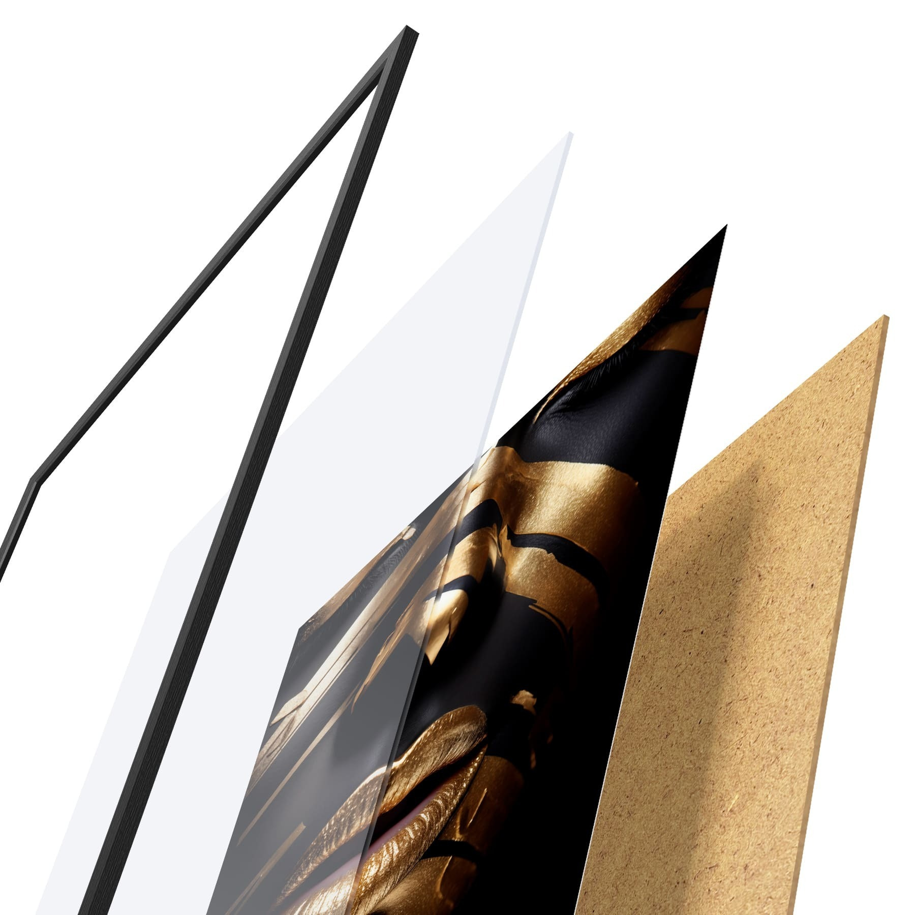 Plakát se skládá z rámu, plexiskla, tištěného obrazu a dřevotřískového podkladu. Díky úchytům na zadní straně lze plakát ihned zavěsit na zeď.