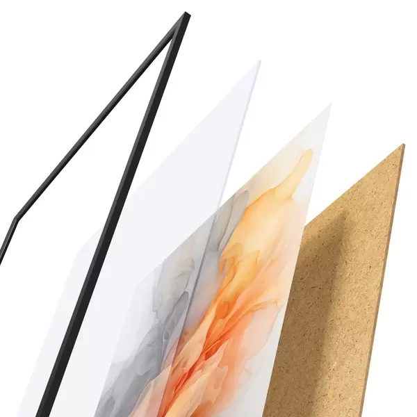 Plakát se skládá z rámu, plexiskla, tištěného obrazu a dřevotřískového podkladu. Díky úchytům na zadní straně lze plakát ihned zavěsit na zeď.