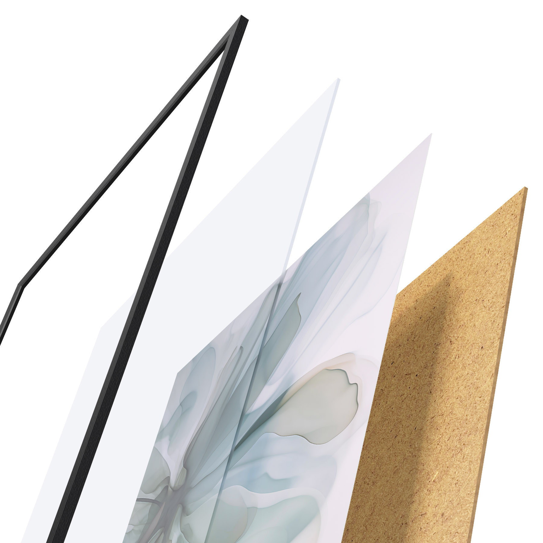 Plakát se skládá z rámu, plexiskla, tištěného obrazu a dřevotřískového podkladu. Díky úchytům na zadní straně lze plakát ihned zavěsit na zeď.