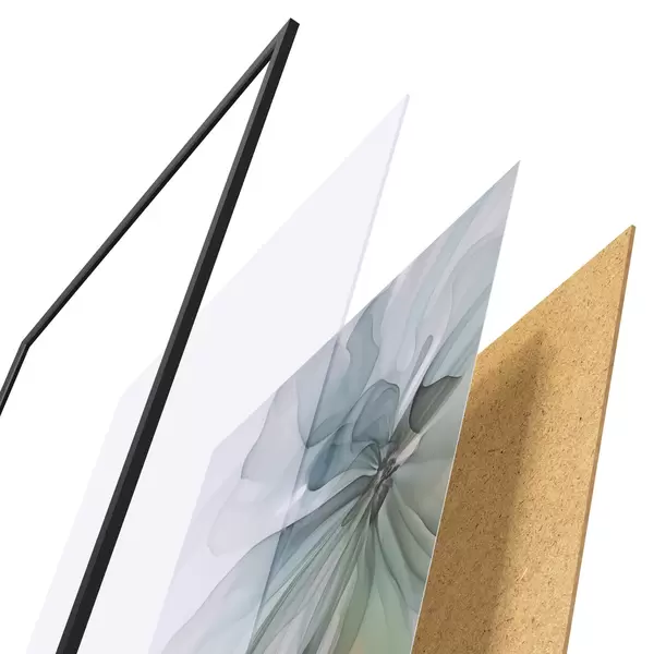 Plakát se skládá z rámu, plexiskla, tištěného obrazu a dřevotřískového podkladu. Díky úchytům na zadní straně lze plakát ihned zavěsit na zeď.
