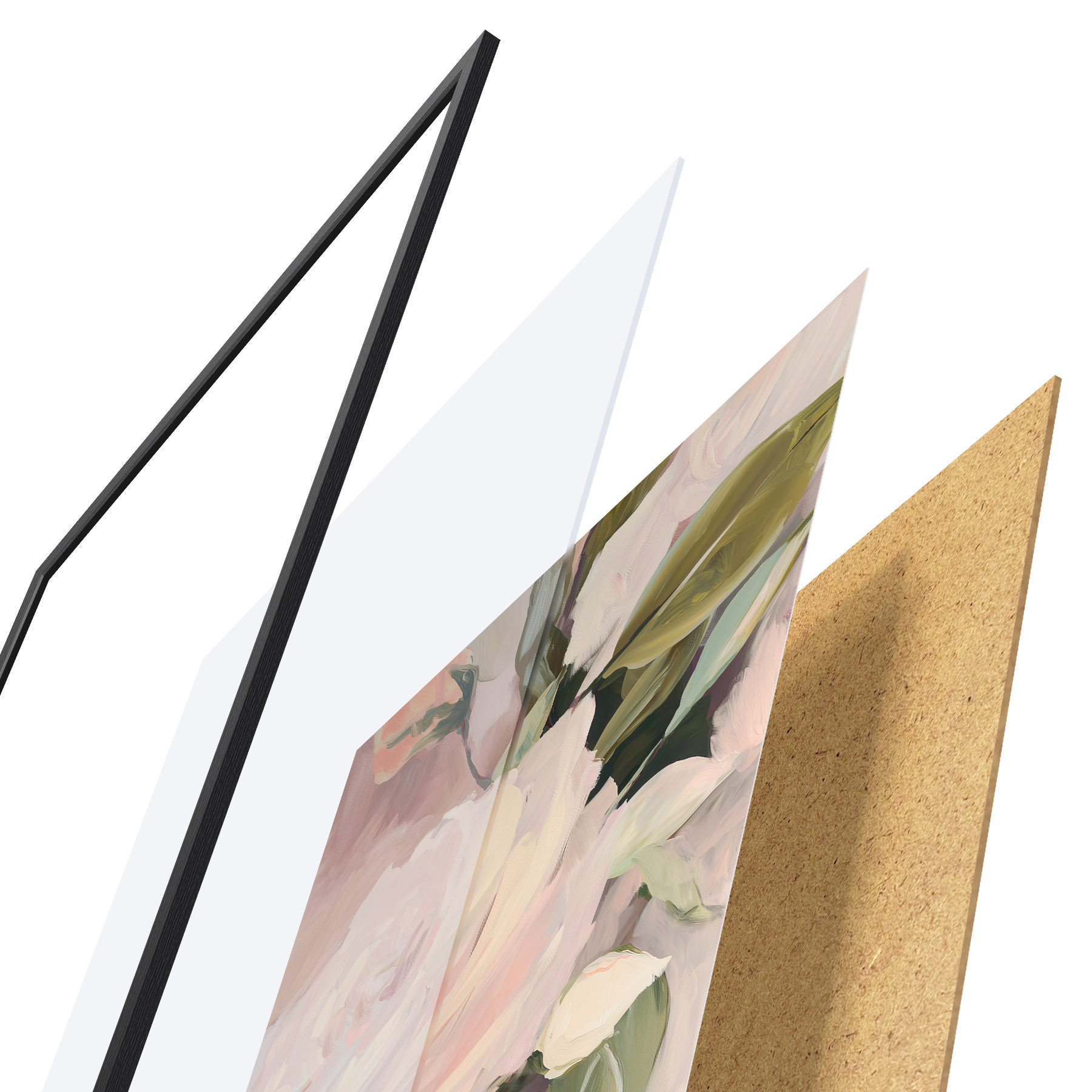 Plakát se skládá z rámu, plexiskla, tištěného obrazu a dřevotřískového podkladu. Díky úchytům na zadní straně lze plakát ihned zavěsit na zeď.