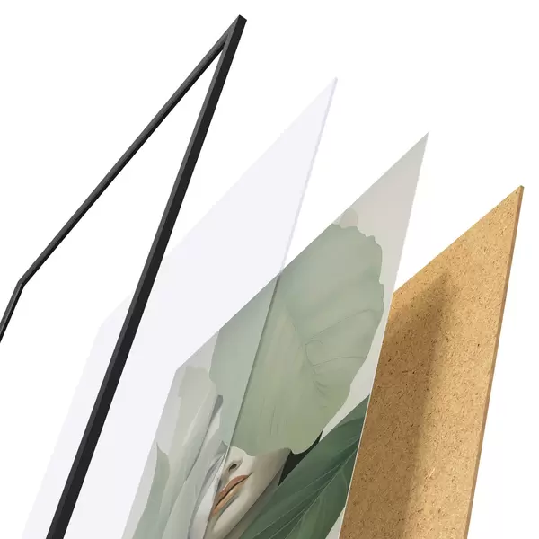 Plakát se skládá z rámu, plexiskla, tištěného obrazu a dřevotřískového podkladu. Díky úchytům na zadní straně lze plakát ihned zavěsit na zeď.