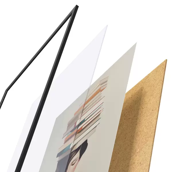 Plakát se skládá z rámu, plexiskla, tištěného obrazu a dřevotřískového podkladu. Díky úchytům na zadní straně lze plakát ihned zavěsit na zeď.