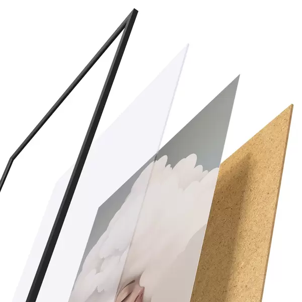 Plakát se skládá z rámu, plexiskla, tištěného obrazu a dřevotřískového podkladu. Díky úchytům na zadní straně lze plakát ihned zavěsit na zeď.