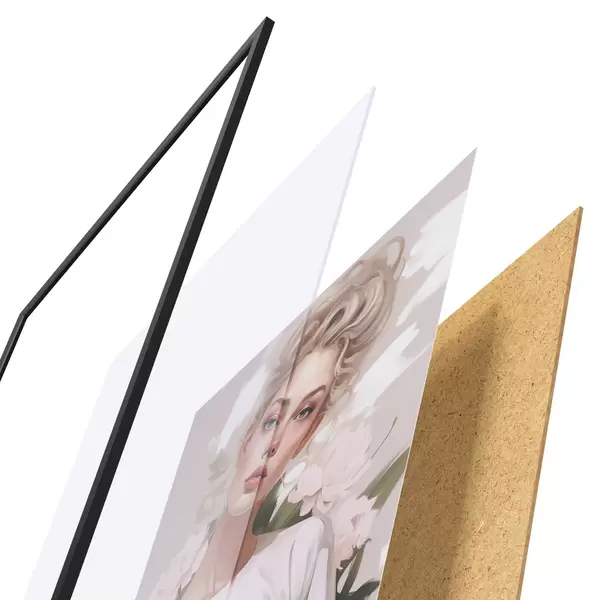 Plakát se skládá z rámu, plexiskla, tištěného obrazu a dřevotřískového podkladu. Díky úchytům na zadní straně lze plakát ihned zavěsit na zeď.