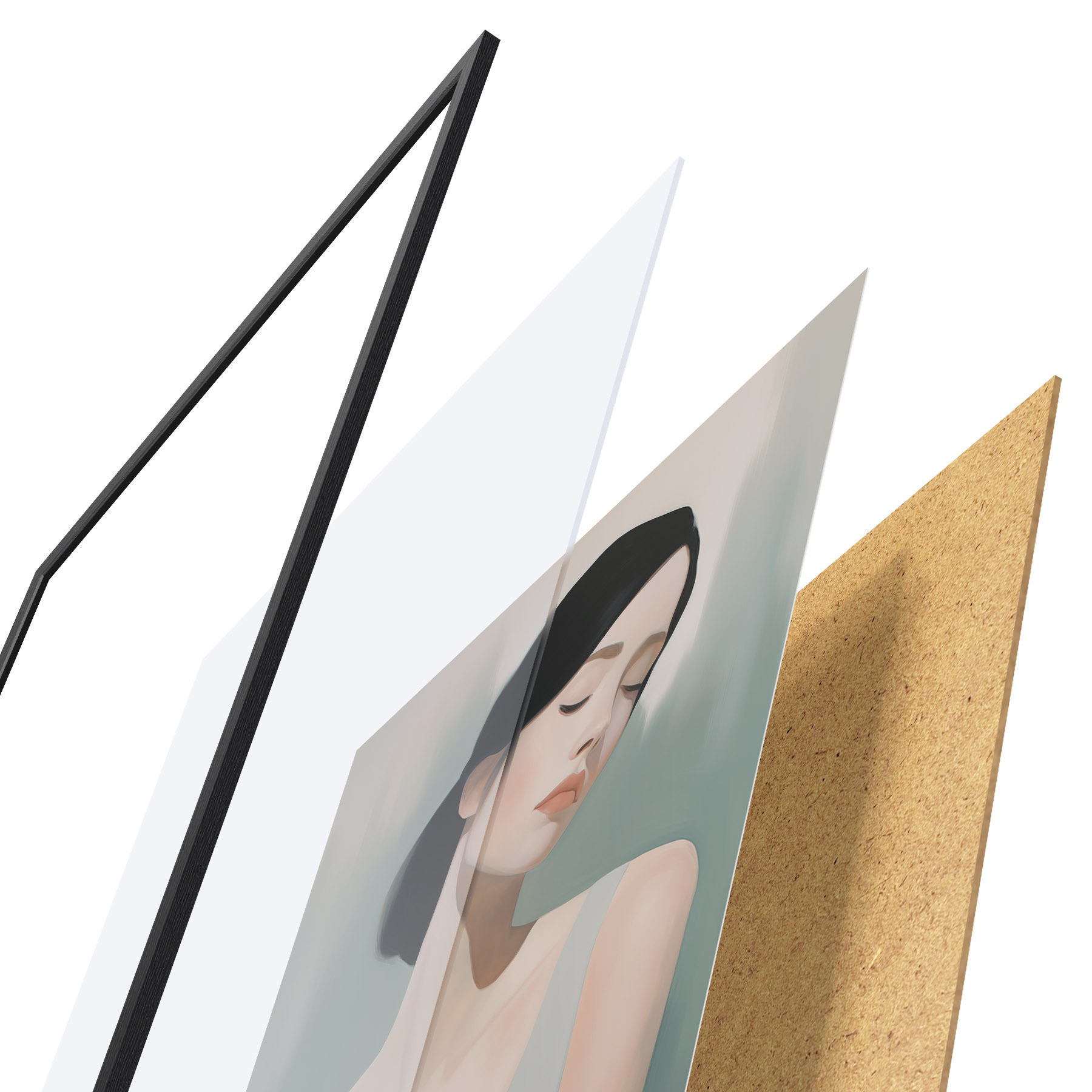 Plakát se skládá z rámu, plexiskla, tištěného obrazu a dřevotřískového podkladu. Díky úchytům na zadní straně lze plakát ihned zavěsit na zeď.